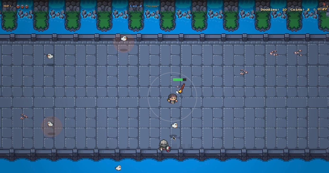 Clean poop to gain XP and pay to unlock powerful janitorial upgrades!