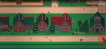 Avoid stepping in pigeon droppings and other obstacles or getting hit by a knight or horse. Lose all HP and thy shift is over.